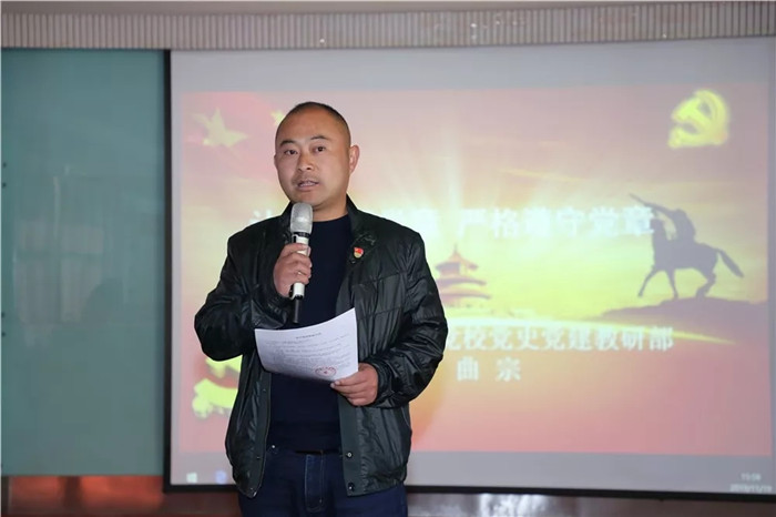 曲宗副教授首先明確了黨章 "根本大法”的地位,指出黨章是規(guī)范和指導(dǎo)黨的工作、黨內(nèi)活動(dòng)、黨的建設(shè)的根本依據(jù)。隨后曲宗副教授介紹了黨章的歷史沿革,以及十九大修改黨章的歷史意義和重要內(nèi)容,號(hào)召每一名黨員認(rèn)真學(xué)習(xí)黨章,嚴(yán)格遵守黨章,時(shí)刻與黨中央保持一致,自覺做到"兩個(gè)維護(hù)”。要求每一名黨員都把黨章作為政治思想建設(shè)方面的X光機(jī),每年對(duì)照黨章給自己"體檢”一下,紅紅臉、出出汗,牢記入黨初心、遵守黨的紀(jì)律,維護(hù)一名黨員的思想行為純潔性。