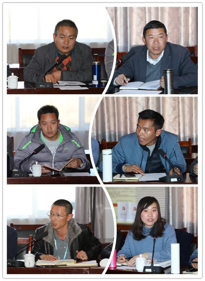 各負(fù)責(zé)人會(huì)上作說(shuō)明·多杰太(左一) 、田鵬(右一)、羅布次仁(左二)、許鵬杰(右二)、李紀(jì)偉(左三)、李麗(右三)