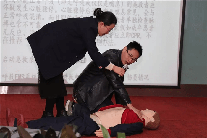 其中"消防知識”和"心肺復(fù)蘇:BLS”等課程的授課講師不但進(jìn)行了理論知識的講解,而且?guī)ьI(lǐng)各位學(xué)員進(jìn)行了實(shí)踐演練。