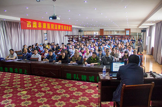 為深入學(xué)習(xí)貫徹習(xí)近平總書記對(duì)"兩學(xué)一做”學(xué)習(xí)教育中作出的關(guān)于"做人做事堅(jiān)守法律底線”重要指示精神。由公司黨委組織于2016年5月25日邀請(qǐng)了西藏偉豪律師事務(wù)所律師、西藏阜康醫(yī)院法律顧問胡可同志為公司職工進(jìn)行為期兩天的法律法規(guī)專項(xiàng)培訓(xùn)。公司共有350位職工參加了此次培訓(xùn)學(xué)習(xí)。