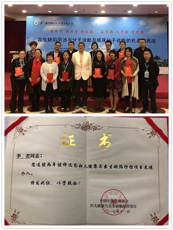 在院期間,李君主動承擔(dān)了學(xué)術(shù)兼職的重?fù)?dān)。在2014年榮獲"西藏自治區(qū)衛(wèi)生行業(yè)婦女崗位建功先進(jìn)個(gè)人”稱號,在2016年、2017年、2018年連續(xù)三年間被評為"婦兒健康與出生缺陷防控項(xiàng)目先進(jìn)個(gè)人”。