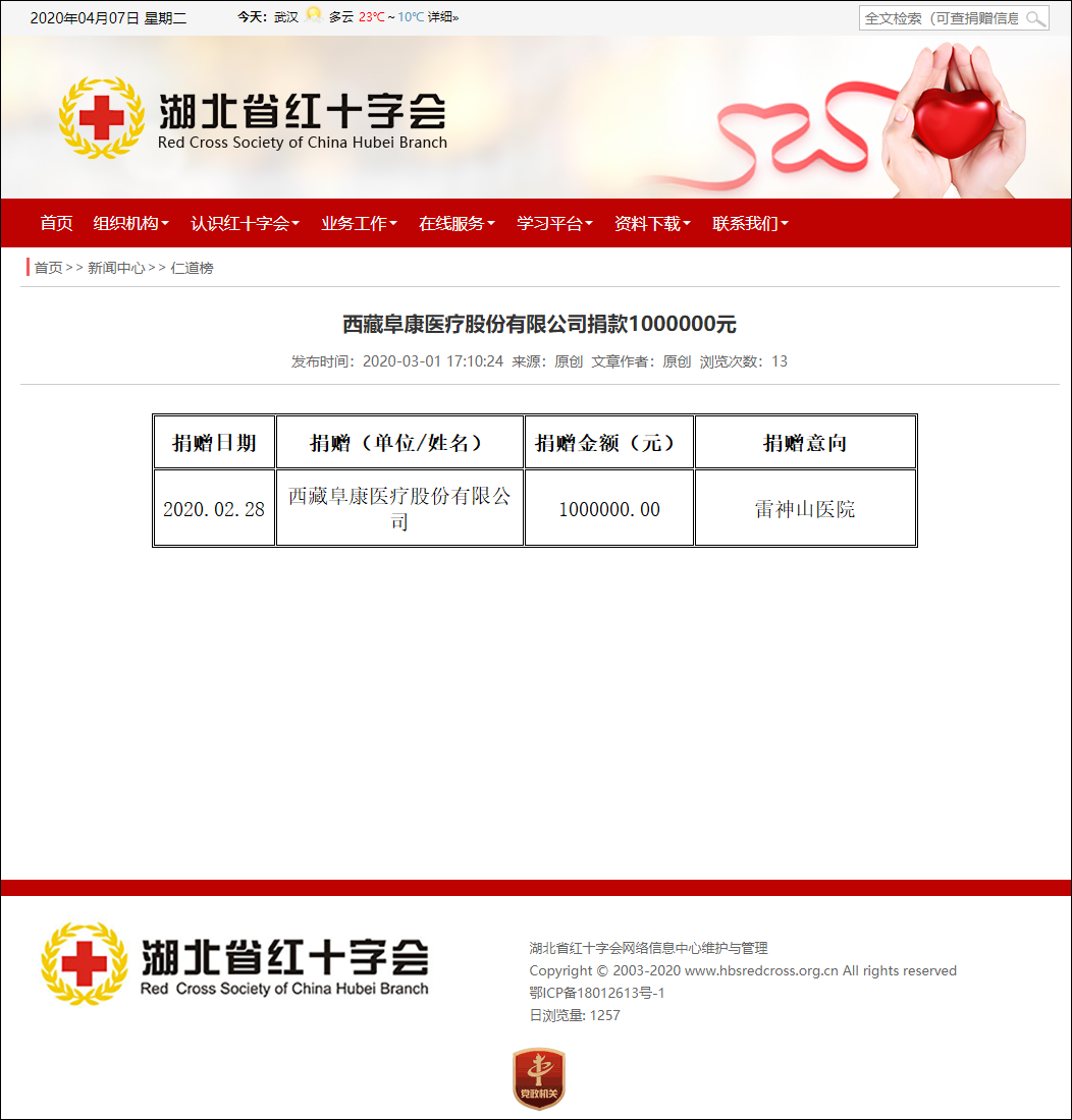 (湖北紅十字會(huì)官網(wǎng)截圖)