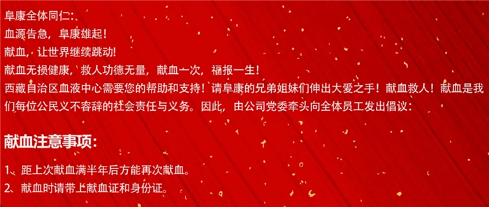 為了感謝阜康員工積極參與無償獻血,公司黨委還將向獻血成功的員工每人提供兩箱牛奶,以幫助恢復體力!