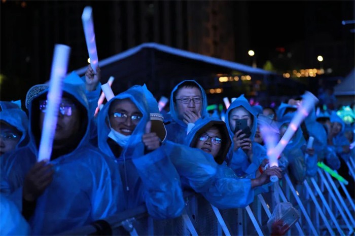 舞臺(tái)上的傾情演繹、舞臺(tái)下的整齊相隨、天空中飄灑而下的細(xì)雨、整場(chǎng)炫麗的五彩燈光,大家共同沉醉在音樂(lè)的海洋之中,物與我、我與他、人與人已經(jīng)沒(méi)有了界限,大家一起感受生命力的澎湃釋放與不息創(chuàng)造,共同體驗(yàn)詩(shī)意的人生和生命的永恒價(jià)值。