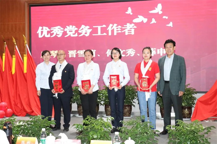 黨委委員李麗宣讀表彰決定:經(jīng)各支部推選,公司黨委會(huì)審議決定表彰2個(gè)先進(jìn)基層黨組織、4名優(yōu)秀黨務(wù)工作者、8名優(yōu)秀黨員、8名志愿服務(wù)之星,10本優(yōu)秀筆記。