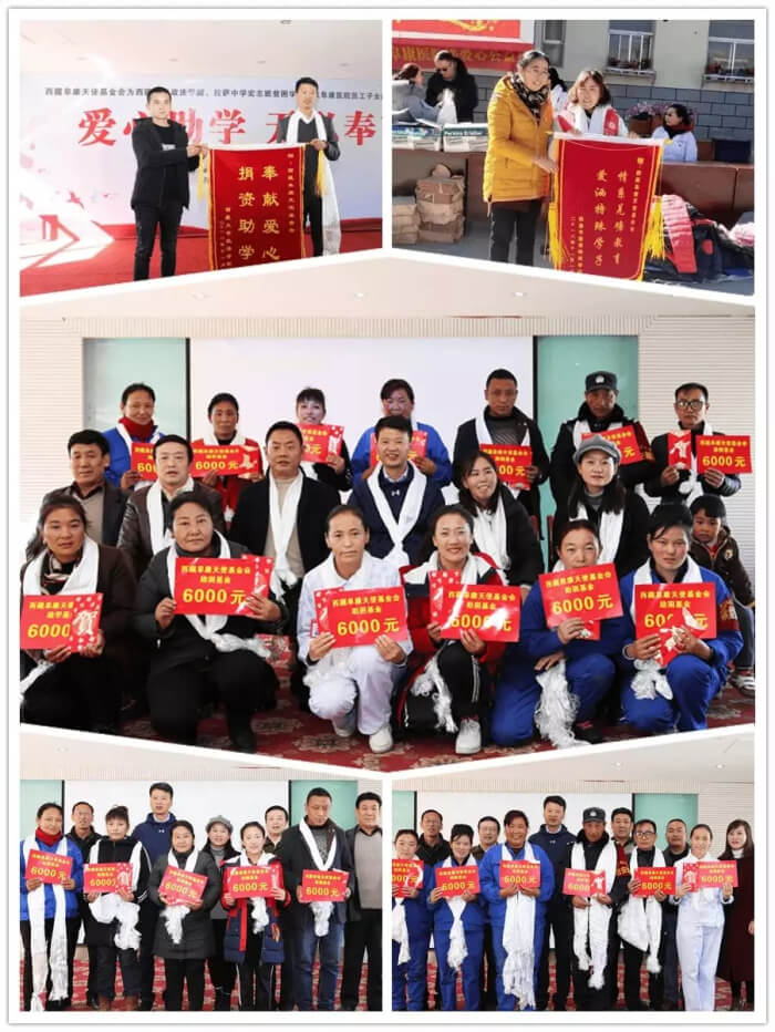 2018年2月11日,西藏阜康天使基金會和西藏阜康醫(yī)院黨委、工會,在新春佳節(jié)來臨之際慰問困難群眾和員工,根據(jù)困難程度分別發(fā)放6000元、12000元、60000元不等的慰問金。同年11月,"西藏阜康天使基金會助學助醫(yī)捐贈儀式”在阜康婦產(chǎn)兒童分院舉行,在本次捐贈儀式上,西藏阜康天使基金會為西藏大學政法學院30名貧困學生,每人捐助4000元的生活補貼,總金額為120000元人民幣。通過這些幫扶活動幫助了貧困員工、貧困群眾和學生走出困境、重塑生活,為他們生活注入了新的希望。