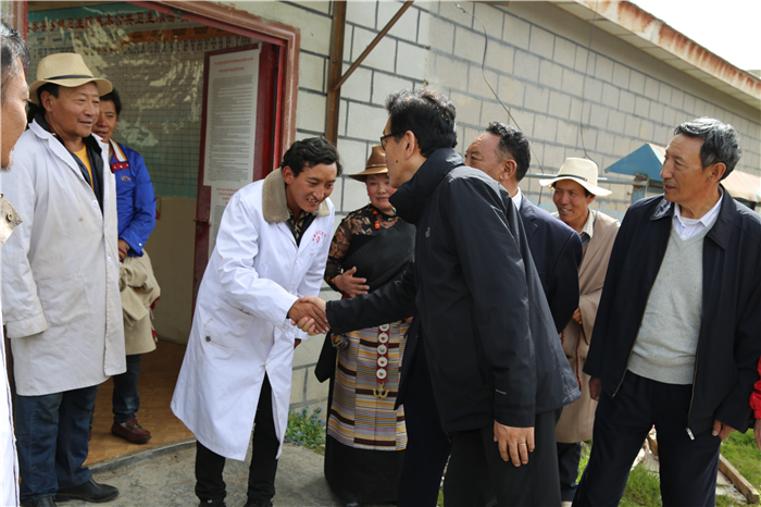 阿沛·晉源主席和施工人員一一握手慰問,囑咐他們在施工過程中一定注意安全!要把衛(wèi)生院建成標(biāo)桿衛(wèi)生院,造福夏瑪鄉(xiāng)農(nóng)牧民群眾!看完即將竣工的衛(wèi)生院他又來到老舊的衛(wèi)生院看望正在工作的醫(yī)護人員,與醫(yī)護人員和患者親切握手交談,囑咐他們一定多加學(xué)習(xí)和培訓(xùn),用心工作,搬到新的衛(wèi)生院后一定不要辜負阜康全體員工的期望!接著晉源主席也指示阜康要繼續(xù)幫助衛(wèi)生院,切實提高衛(wèi)生院工作人員醫(yī)療水平,將夏瑪鄉(xiāng)衛(wèi)生院打造成全縣乃至全區(qū)的標(biāo)桿衛(wèi)生院!