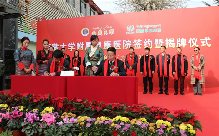 4月7日,西藏大學(xué)附屬阜康醫(yī)院簽約暨揭牌儀式在西藏阜康醫(yī)院婦產(chǎn)兒童院區(qū)隆重舉行。來(lái)自西藏工商聯(lián)、教育、衛(wèi)生、醫(yī)療、金融、科技等西藏各界的嘉賓,見(jiàn)證了這一可載入西藏教育界、醫(yī)療界史冊(cè)的大事件。